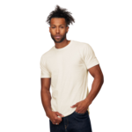 4.5oz., 100% ring-spun USA cotton (unless otherwise noted) Reactive-dyed for longer lasting color Pre-washed to minimize shrinkage Tubular construction Ribbed crew neck Taped neck and shoulders to provide durability Double needle stitching on sleeves and bottom hem Tear Anywhere label USMCA certified Note: Heather Grey is 90% ring-spun cotton/10% polyester. Other Heathers are 50% ring-spun cotton/50% polyester.